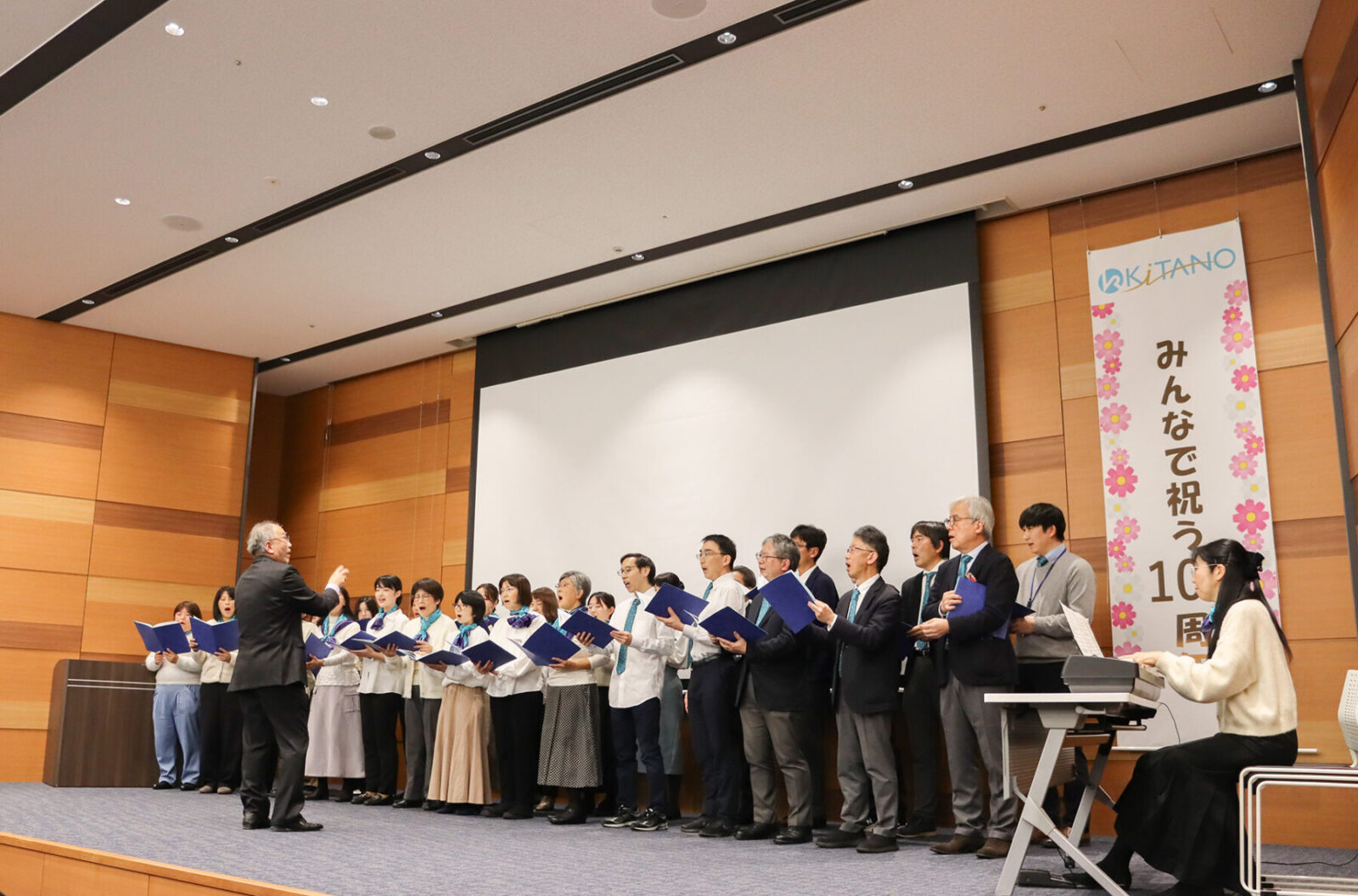 パーティーの後半には、職員の有志で結成した「きたの100周年記念合唱団」が歌声を披露し、会場は盛り上がりました