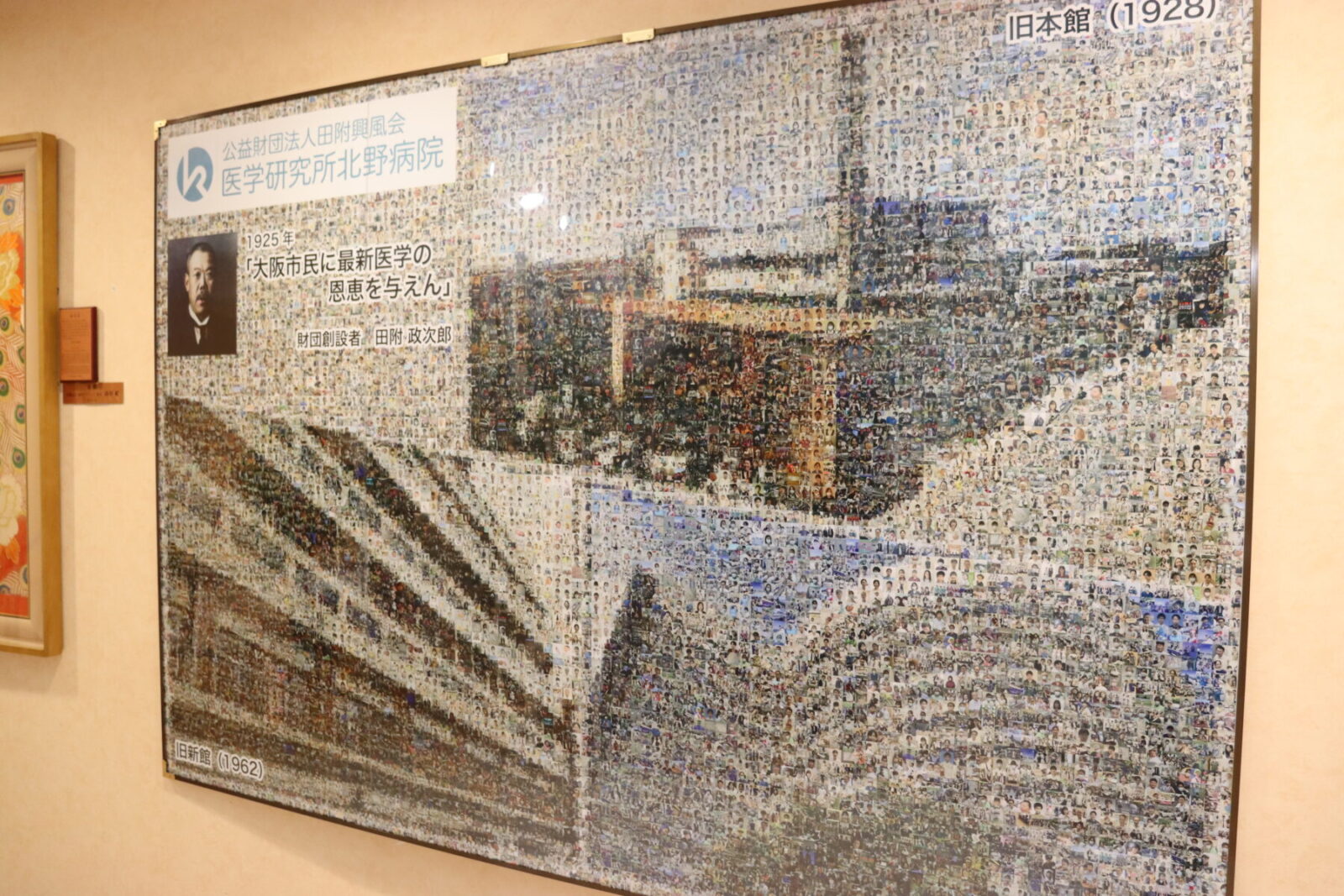 2025年11月、当院本館5階のプラナホールに「100周年フォトモザイクアート」を展示しました。
